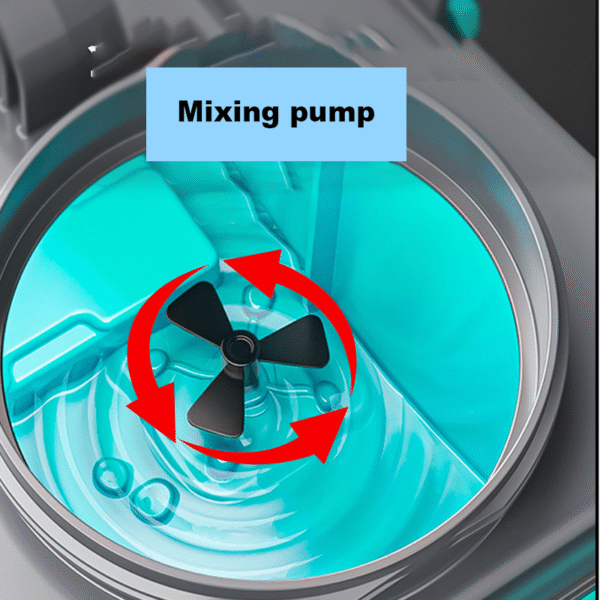 Dual-Pump Power System: Driven by a pure copper motor, the innovative dual-pump system (combining a water pump and a dedicated agitator pump) ensures consistent pressure and optimal mixing of solutions for uniform coverage.