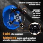 3. Safety and Comfort: This safety helmet features a 4-point ratchet suspension system with padding to ensure comfort and is adjustable. The suspension system reduces pressure points while enhancing stability, making it suitable for all-day wear.
