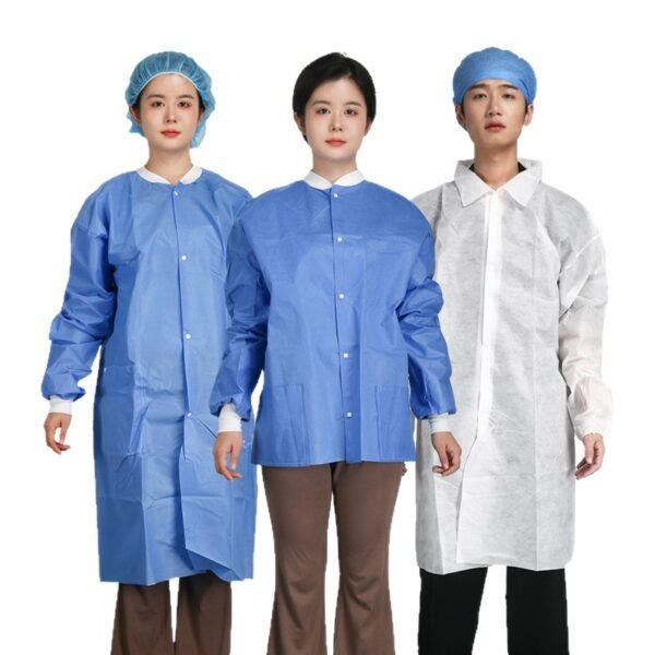 3. SMS workwear has good protective properties, waterproof and oil resistant: It is usually designed with concealed button knitted cuffs and is mainly used in clean rooms, assembly lines, laboratories, aquaculture, visits, beauty, outdoor operations, etc.