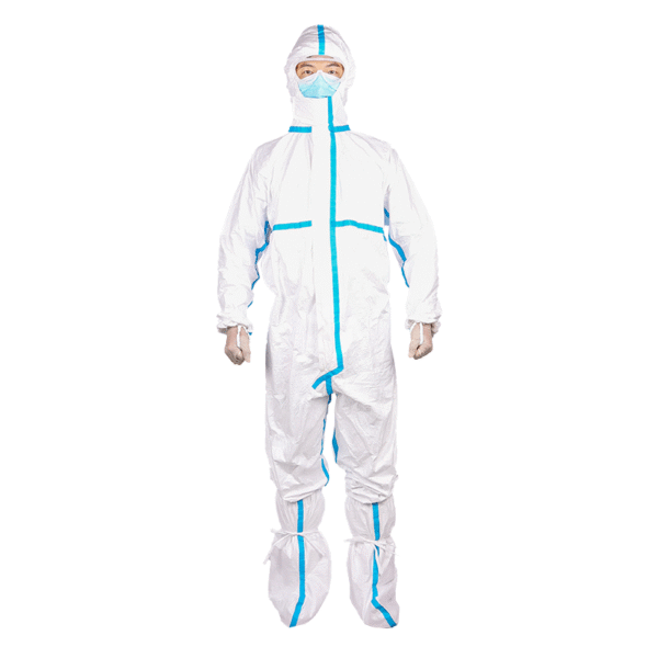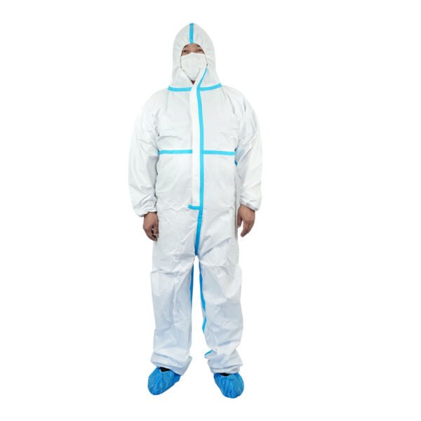 2. The blue-striped protective suit features a breathable membrane with heat-pressed sealing strips at the seams: Creating a fully sealed garment. This suit is tear-resistant and has a long service life.
