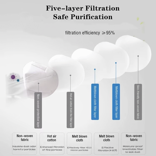1. KN95 protective masks, restoring your healthy breathing. 8-layer filter material, porous structure, three-dimensional circulation ventilation, and tough barrier protection layer by layer.