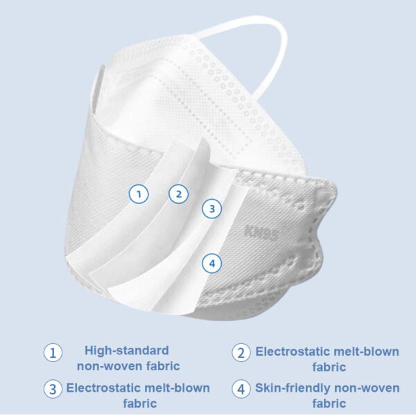 1. Fish-mouth willow-leaf-shaped, KN95 protective mask, four-layer structure, with a filtration rate of over 95%