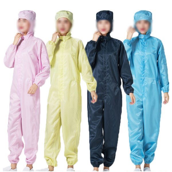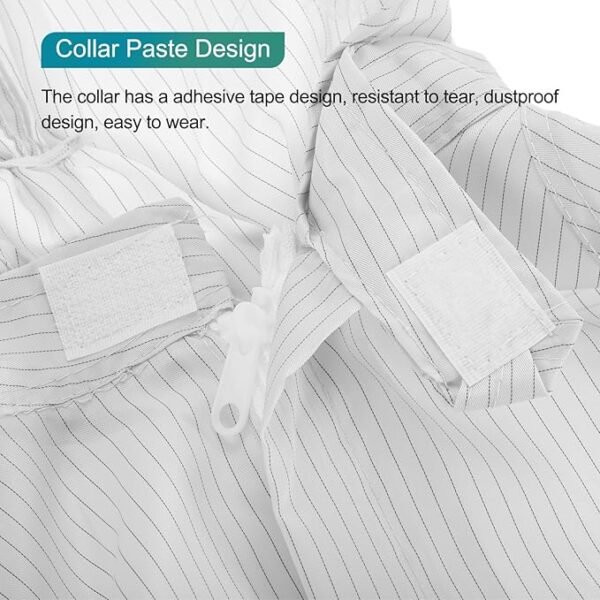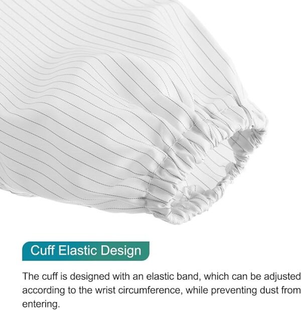 4. Detail sealing: Elastic cuffs at the cuffs and ankles, stand-up collar design at the neckline, combined with a front zipper and Velcro, to reduce dust intrusion and static leakage.