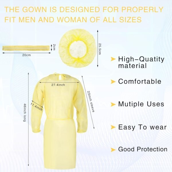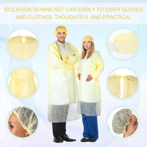 2. Practical Design: Our isolation suits feature a double-tie closed back and elastic cuffs, which can be easily worn over gloves and clothes. They are both considerate and practical. The waist tie is designed with an extra length, giving users confidence.