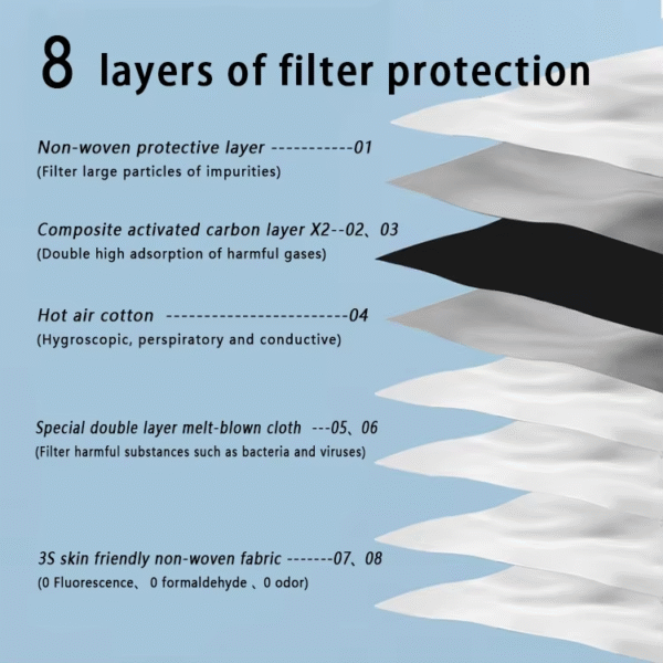 1. 8 layers of high-efficiency filtration, each layer effectively removes harmful substances, and double-layer activated carbon for dual purification