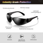Impact-resistant and scratch-resistant lenses – Our safety glasses are made of polycarbonate, so the lenses are durable and clear. Because the lenses are completely impact-resistant and scratch-resistant, they can protect our eyes from splashes and debris, providing us with a clear and safe field of vision.