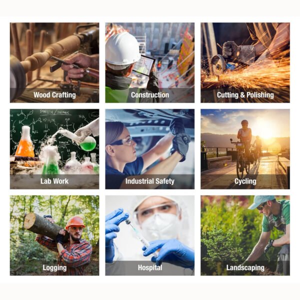 Applicable Scenarios – Transparent lenses are suitable for various scenarios, such as laboratories, sports, cycling, photography, garden work, painting, manufacturing, construction, etc.