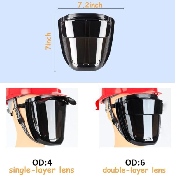 Dual protection system: For electric welding light protection, use the external lens. When using a strong arc light source for argon arc welding, turn down the outer glasses cover. The two layers of mirrors can deal with the arc light of argon arc welding and prevent eye damage.