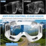 Comprehensive multi-functional protection: Our goggles are scratch-resistant, impact-resistant, saliva-proof, splash-proof and dust-proof. The wider wraparound frame can seamlessly wrap around your face, providing your eyes with excellent peripheral vision and comprehensive protection.