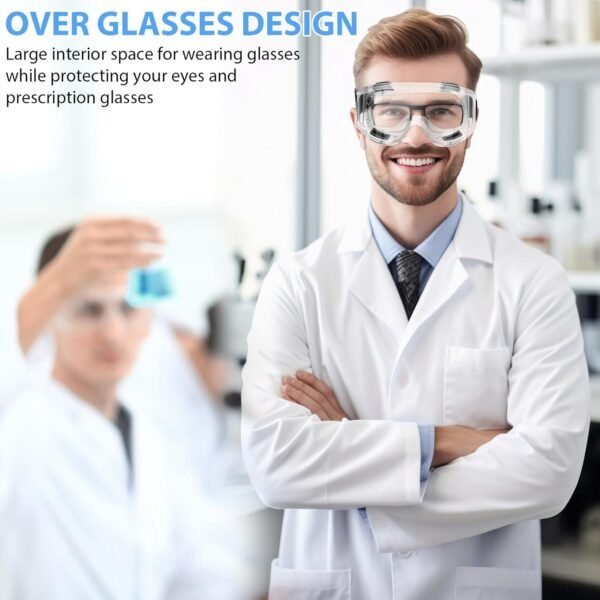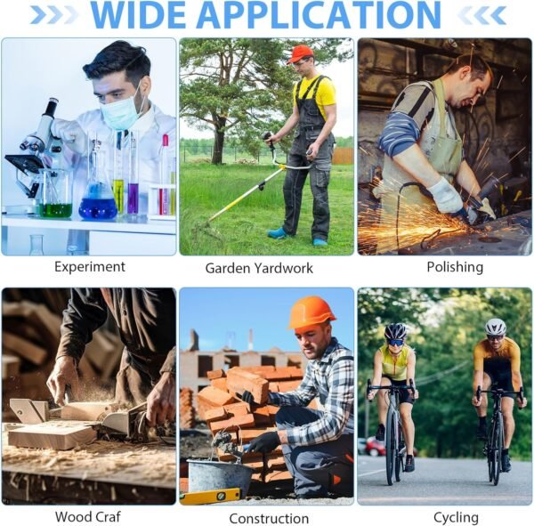 Comfortable wearing: The goggles come with an adjustable elastic headband, suitable for most people’s head circumferences. It adopts a lightweight and durable frame, which is light in weight and can be worn for a long time without feeling any pressure, providing you with a comfortable wearing experience. The internal space of the protective safety goggles allows you to share it with your myopia glasses to obtain a clear scene.